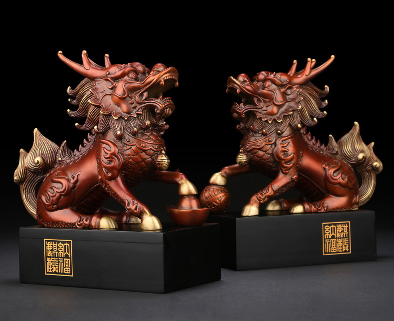 純銅彩《祥瑞麒麟》擺件 銅工藝品家居飾品一對擺設0402
